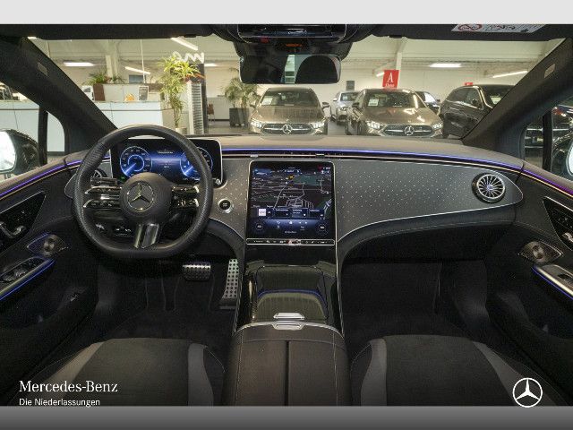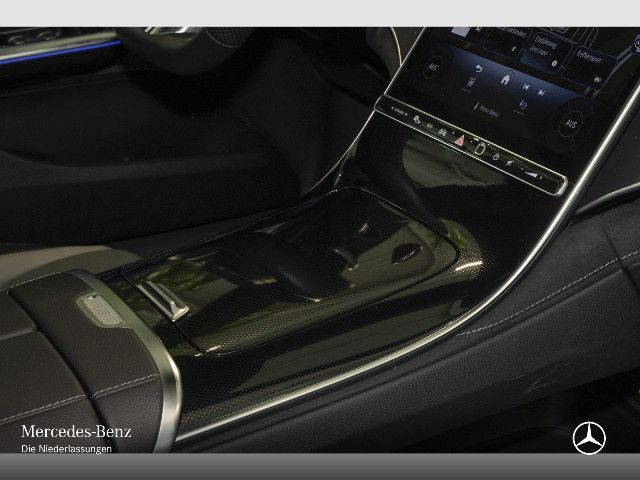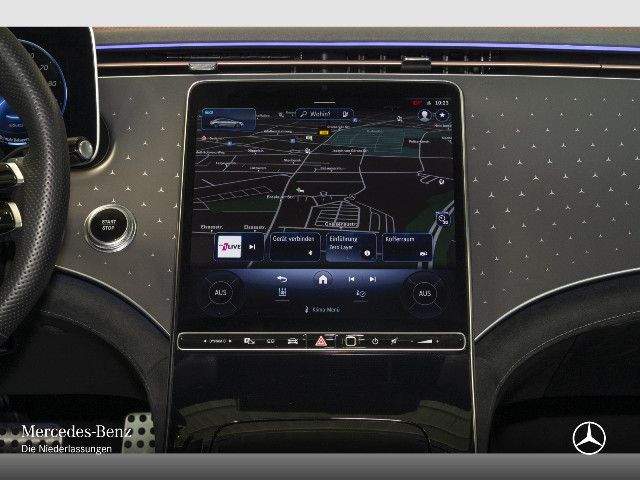 Zierelement hinterleuchtet Ein Kunstwerk aus Licht: Im Zusammenspiel mit der Ambientebeleuchtung erstrahlt das Mercedes-Benz Pattern auf der Instrumententafel in Ihrer Wunschfarbe. Diese faszinierende Inszenierung verleiht dem Innenraum eine futuristische Tiefe und schafft eine Atmosphäre von moderner Eleganz.