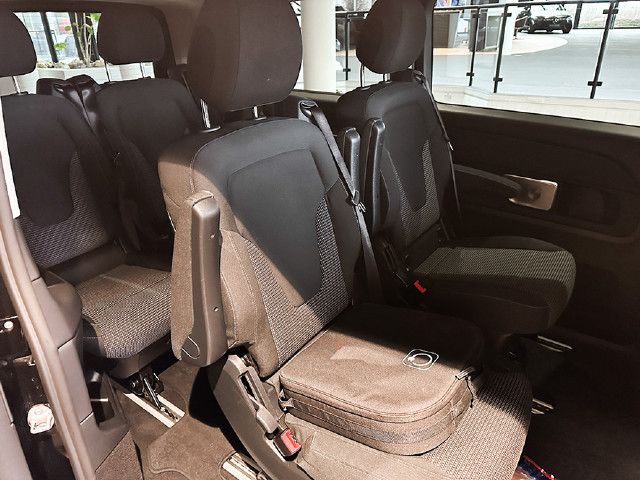 Der Komfort-Sitz in der 1. Reihe im Fond rechts ermöglicht mit vielen Einstellmöglichkeiten angenehmes Sitzen. Die Sitzlehne und die Armlehnen sind in ihrer Neigung, die Komfort-Kopfstütze in ihrer Höhe und Neigung einstellbar. Der Komfort-Sitz lässt sich um 180° drehen, ist mit 3-Punkt-Sicherheitsgurt und ISOFIX- Kindersitzbefestigung ausgestattet