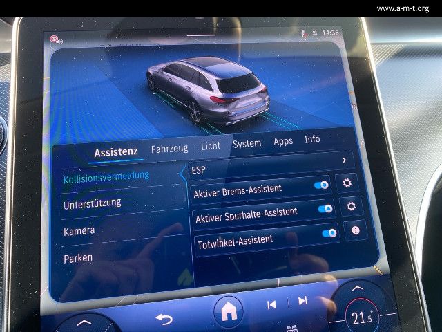 Der Aktive Park-Assistent mit PARKTRONIC erkennt freie Parklücken im Vorüberfahren. Sobald ein Parkplatz ausgewählt ist, können Sie dank Rückfahrkamera, Ultraschallsensoren und praktischer Visualisierungen souverän einparken – oder assistiert einparken lassen.