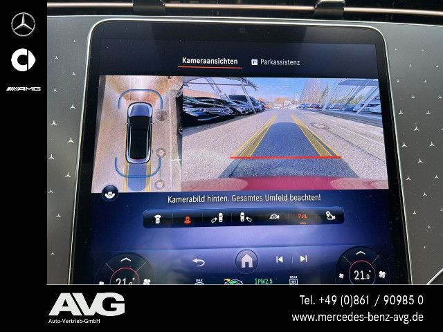 Der Aktive Park-Assistent mit PARKTRONIC und 360°-Kamera erkennt freie Parklücken sowie markierte Parkplätze im Vorüberfahren. Nach der Parkplatzauswahl können Sie dank dynamischer Visualisierung und akustischer Rückmeldung souverän einparken – oder assistiert einparken lassen.