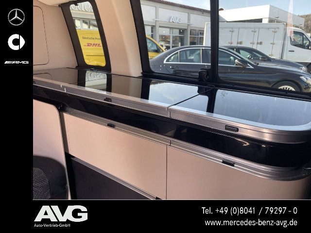 Die beleuchteten „Mercedes-Benz“ Schriftzüge mit Edelstahlblende vermitteln Exklusivität bereits beim Einstieg. Beim Öffnen der Fahrer- und Beifahrertür werden die Schriftzüge vorn beleuchtet, beim Öffnen der vorhandenen Schiebetüren auch hinten.