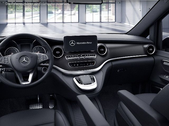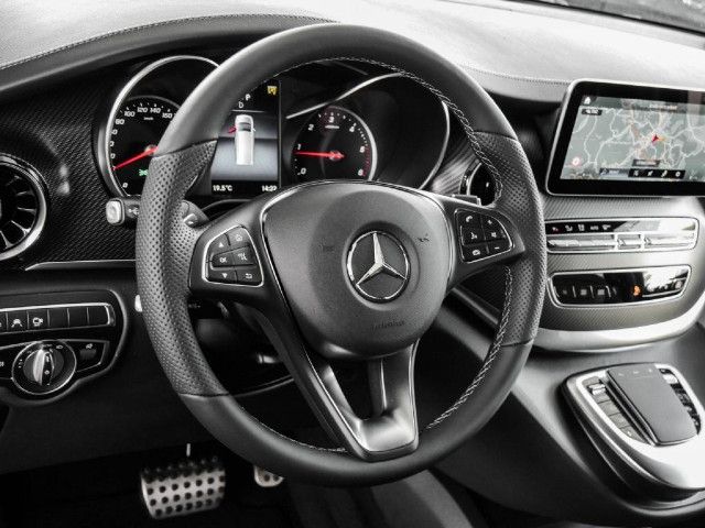 AVANTGARDE Funktional und optisch attraktive Ausstattungen steigern Sportlichkeit und Exklusivität der V-Klasse AVANTGARDE. Die vanadiumsilber lackierten 43,2 cm (17 Zoll) Leichtmetallräder im 5-Speichen-Design, hochwertig gestaltete LED-Scheinwerfer und Heckleuchten sowie der Bordkantenzierstab und das Chromzierelement im Heck verfeinern das Exterieur.