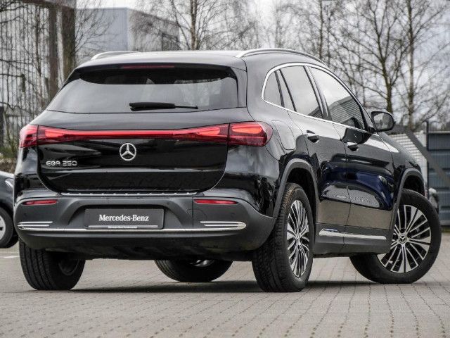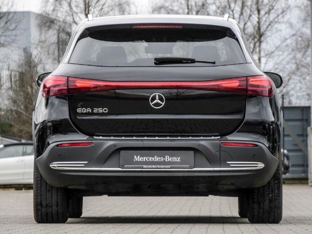 Serienausstattung Unverkennbares Mitglied der vollelektrischen Mercedes-Benz Familie: Außen charakterisieren den EQA die Black-Panel-Kühlerverkleidung, das Leuchtenband an Front und Heck sowie blaue Elemente in den LED-Scheinwerfern. Innen weist das intelligente MBUX Multimediasystem den Weg zur nächsten Ladesäule.