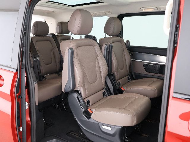 Die V-Klasse EXCLUSIVE interpretiert Luxus aufregend neu: Sie kombiniert edle Design-Merkmale mit einer luxuriösen Ausstattung. Das Panorama-Schiebedach schafft ein großzügiges, lichtdurchflutetes Ambiente. Komfortabel sind die große Mittelkonsole mit Kühlfach und die Thermo-Cupholder.