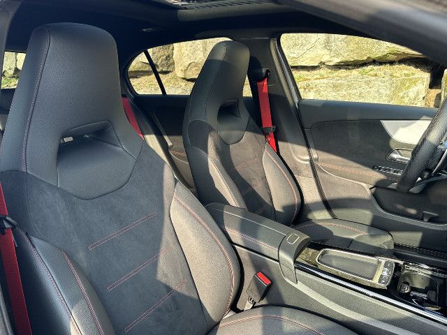 Ihr Fahrzeug zeigt sich von seiner besten Seite: Das AMG Styling und 18″ AMG Leichtmetallräder definieren das Exterieur. Innen bieten Sportsitze in Integral-Optik perfekten Halt. Abgerundet wird das Erlebnis durch den sportlichen Motorsound – für Fahrspaß, den Sie nicht nur fühlen, sondern auch hören.