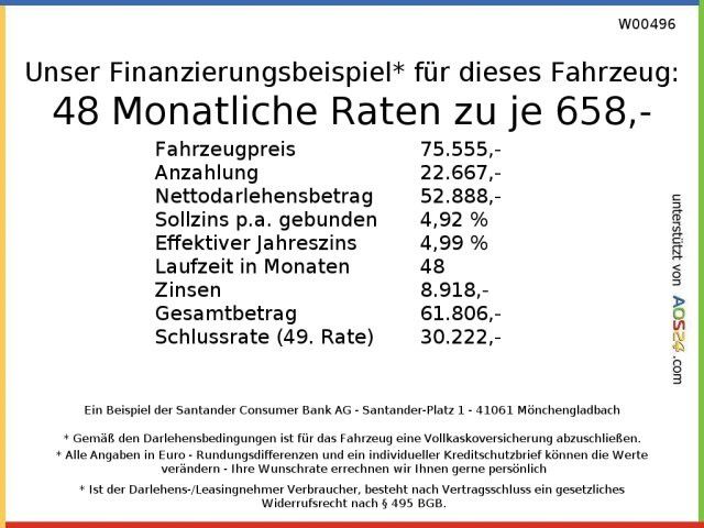 [1] Bei den dargestellten „Studio-Fotos“ handelt es sich um computergenerierte Fahrzeugbilder, die zu Illustrationszwecken zur Verfügung gestellt werden. Diese Fotos stellen ein Fahrzeug der gleichen Marke und des gleichen Modells dar, können aber von den realen "Fahrzeugfotos" abweichen (Zustand des Fahrzeugs und/oder Ausstattung) und haben daher keinen vertraglichen Wert. Aufgrund technischer Beschränkungen können die Farben leicht von den tatsächlichen Farben der Lackierung oder den Materialien der Innenausstattung abweichen.