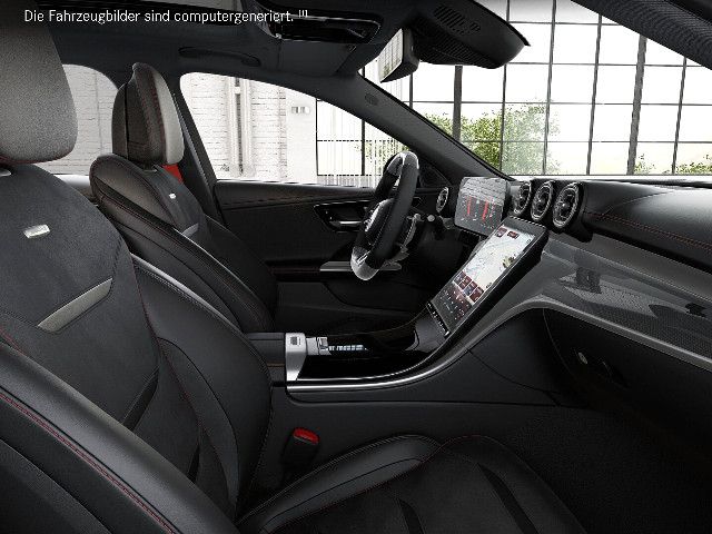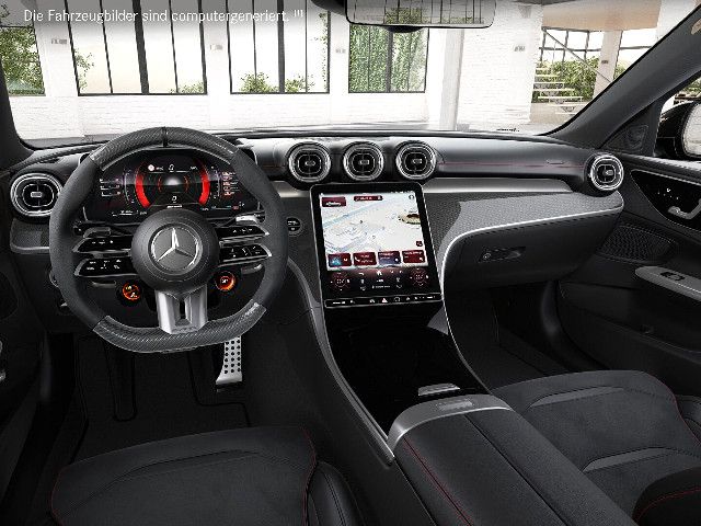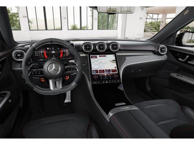 Willkommen in der Welt von Mercedes-AMG: Ihr Interieur vereint erstklassigen Komfort mit performantem Design. Schwarze Sportsitze mit roten Kontrastziernähten und das AMG Performance Lenkrad in Leder Nappa prägen das Ambiente. AMG spezifische Anzeigen komplettieren diesen dynamischen Auftritt visuell und funktional.