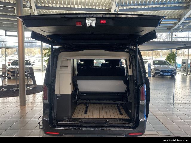 Die beleuchteten „Mercedes-Benz“ Schriftzüge mit Edelstahlblende vermitteln Exklusivität bereits beim Einstieg. Beim Öffnen der Fahrer- und Beifahrertür werden die Schriftzüge vorn beleuchtet, beim Öffnen der vorhandenen Schiebetüren auch hinten.