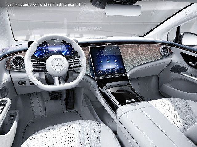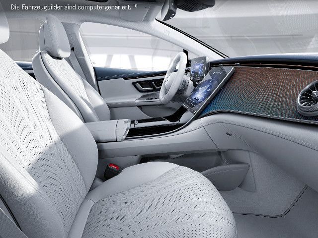 Die Zierelemente sind exklusive Bestandteile des „Edition 1“-Sondermodells. Sie fügen sich harmonisch in den Innenraum ein und setzen spannende Kontraste zum Farbkonzept. Der blaue Rautendruck betont den besonderen Status dieses EQE. Die Zierelemente sind ein jederzeit wahrnehmbares Qualitätsmerkmal eines sorgfältig verarbeiteten Premium-Produkts.