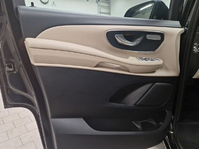 Die beleuchteten „Mercedes-Benz“ Schriftzüge mit Edelstahlblende vermitteln Exklusivität bereits beim Einstieg. Beim Öffnen der Fahrer- und Beifahrertür werden die Schriftzüge vorn beleuchtet, beim Öffnen der vorhandenen Schiebetüren auch hinten.