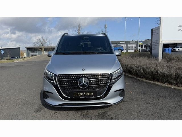 AVANTGARDE Funktional und optisch attraktive Ausstattungen steigern die Exklusivität der V-Klasse. 43,2 cm (17 Zoll) Leichtmetallräder, adaptive MULTIBEAM LED Scheinwerfer sowie abgedunkelte Rückleuchten und die dynamisch geformte Heckscheibe mit Chromzierstab und „Mercedes-Benz“ Schriftzug verfeinern das Exterieur.