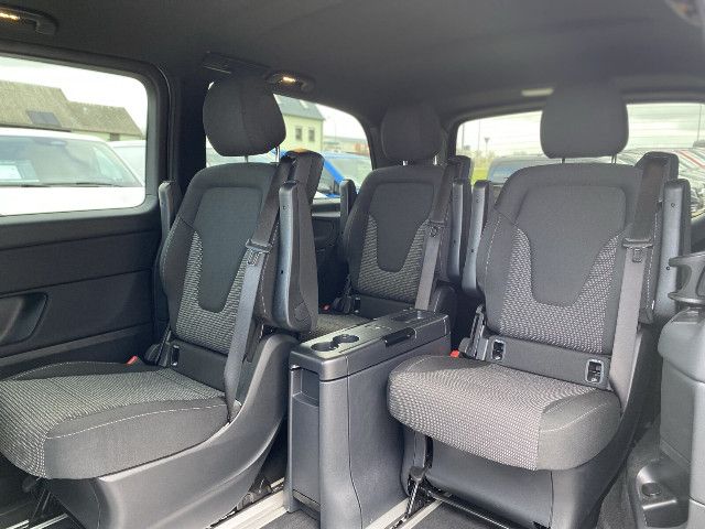 Der Komfort-Sitz in der 1. Reihe im Fond rechts ermöglicht mit vielen Einstellmöglichkeiten angenehmes Sitzen. Die Sitzlehne und die Armlehnen sind in ihrer Neigung, die Komfort-Kopfstütze in ihrer Höhe und Neigung einstellbar. Der Komfort-Sitz lässt sich um 180° drehen, ist mit 3-Punkt-Sicherheitsgurt und ISOFIX- Kindersitzbefestigung ausgestattet