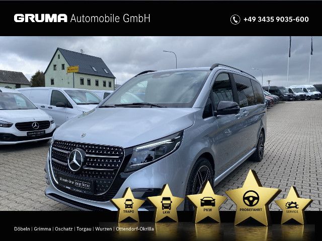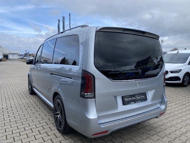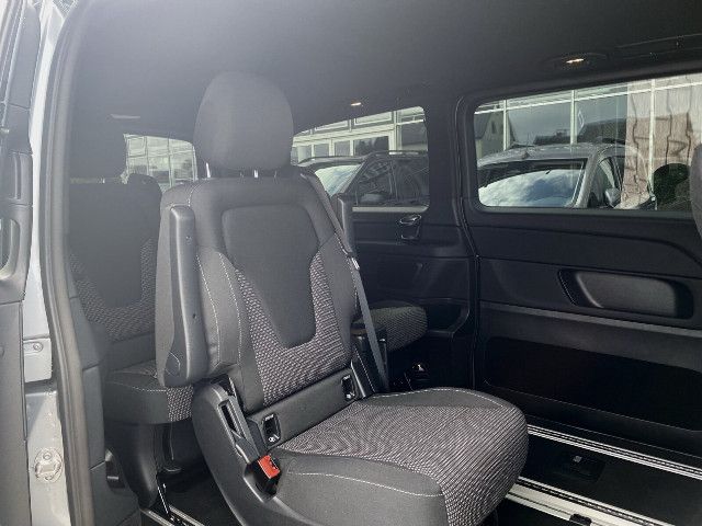 Die beleuchteten „Mercedes-Benz“ Schriftzüge mit Edelstahlblende vermitteln Exklusivität bereits beim Einstieg. Beim Öffnen der Fahrer- und Beifahrertür werden die Schriftzüge vorn beleuchtet, beim Öffnen der vorhandenen Schiebetüren auch hinten.