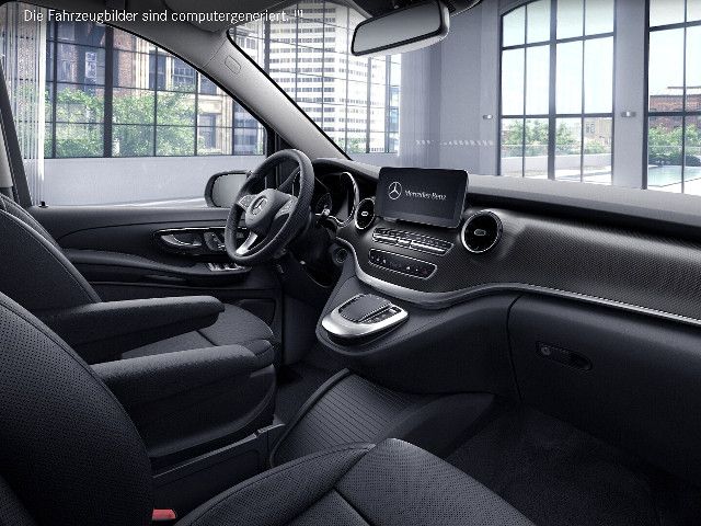 AVANTGARDEFunktional und optisch attraktive Ausstattungen steigern Sportlichkeit und Exklusivität der V-Klasse AVANTGARDE. Die vanadiumsilber lackierten 43,2 cm (17 Zoll) Leichtmetallräder im 5-Speichen-Design, hochwertig gestaltete LED-Scheinwerfer und Heckleuchten sowie der Bordkantenzierstab und das Chromzierelement im Heck verfeinern das Exterieur.