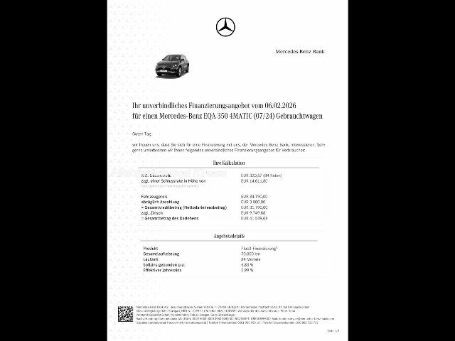 Die Erweiterte Serienausstattung beinhaltet Extras wie den Aktiven Spurhalte-Assistenten. Mit MBUX Navigation Premium erreichen Sie Ihr Ziel schnell und sicher. Dienste wie Mercedes me Charge vereinfachen das Laden und die Abrechnung.