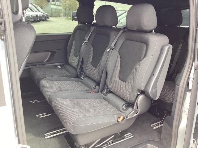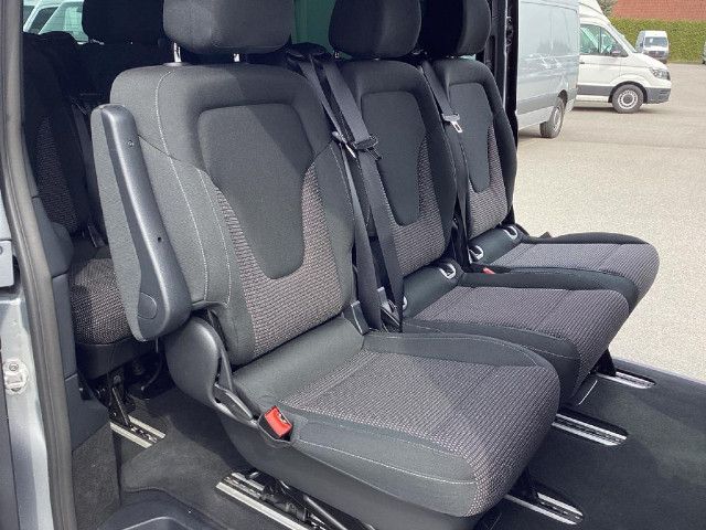 Die beleuchteten „Mercedes-Benz“ Schriftzüge mit Edelstahlblende vermitteln Exklusivität bereits beim Einstieg. Beim Öffnen der Fahrer- und Beifahrertür werden die Schriftzüge vorn beleuchtet, beim Öffnen der vorhandenen Schiebetüren auch hinten.