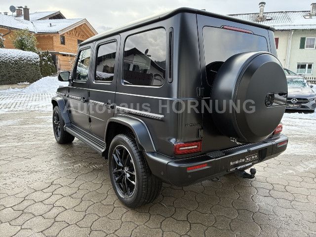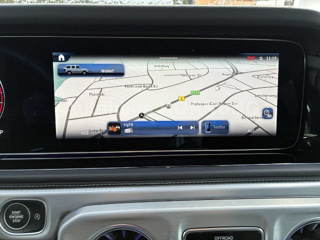 Ein Auftritt, der Eindruck hinterlässt: Radlaufverbreiterungen und 20″ AMG Leichtmetallräder betonen die Dynamik und Souveränität Ihrer G-Klasse. Unterstützt durch MULTIBEAM LED-Scheinwerfer und das Multifunktions-Sportlenkrad in Leder Nappa, genießen Sie eine Präsenz, die robustes Design mit modernster Technologie vereint.