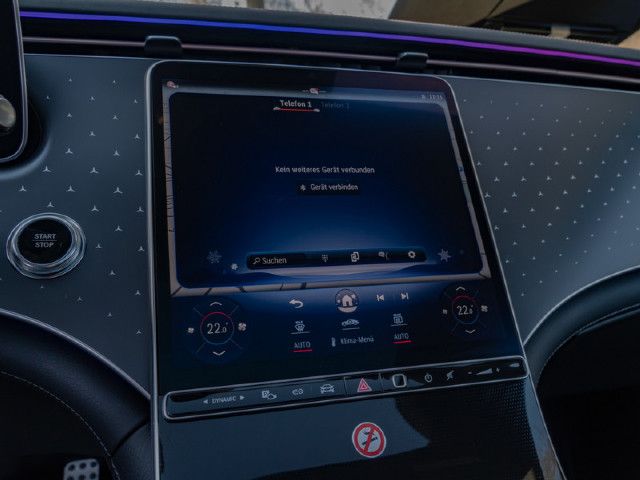 Ein Kunstwerk aus Licht: Im Zusammenspiel mit der Ambientebeleuchtung erstrahlt das Mercedes-Benz Pattern auf der Instrumententafel in Ihrer Wunschfarbe. Diese faszinierende Inszenierung verleiht dem Innenraum eine futuristische Tiefe und schafft eine Atmosphäre von moderner Eleganz.
