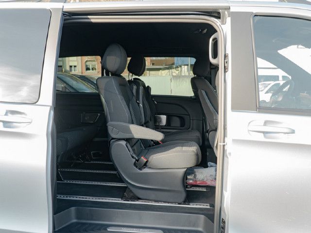 Schriftzug Einstieg Mercedes-Benz beleuchtet Die beleuchteten „Mercedes-Benz“ Schriftzüge mit Edelstahlblende vermitteln Exklusivität bereits beim Einstieg. Beim Öffnen der Fahrer- und Beifahrertür werden die Schriftzüge vorn beleuchtet, beim Öffnen der vorhandenen Schiebetüren auch hinten.