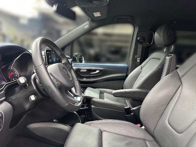 Schriftzug Einstieg Mercedes-Benz beleuchtet Die beleuchteten „Mercedes-Benz“ Schriftzüge mit Edelstahlblende vermitteln Exklusivität bereits beim Einstieg. Beim Öffnen der Fahrer- und Beifahrertür werden die Schriftzüge vorn beleuchtet, beim Öffnen der vorhandenen Schiebetüren auch hinten.