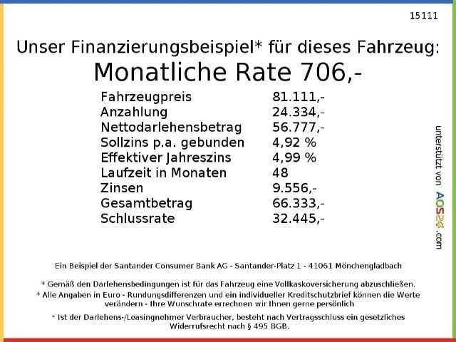 [1] Bei den dargestellten „Studio-Fotos“ handelt es sich um computergenerierte Fahrzeugbilder, die zu Illustrationszwecken zur Verfügung gestellt werden. Diese Fotos stellen ein Fahrzeug der gleichen Marke und des gleichen Modells dar, können aber von den realen "Fahrzeugfotos" abweichen (Zustand des Fahrzeugs und/oder Ausstattung) und haben daher keinen vertraglichen Wert. Aufgrund technischer Beschränkungen können die Farben leicht von den tatsächlichen Farben der Lackierung oder den Materialien der Innenausstattung abweichen.
