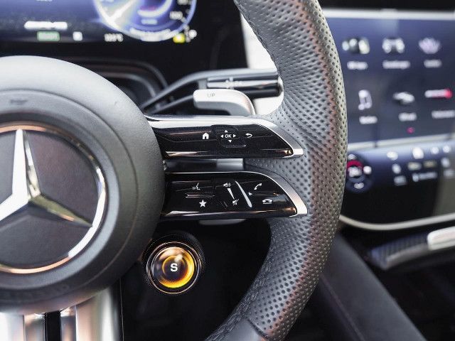 Die AMG Lenkradtasten erlauben eine schnelle und zielsichere Bedienung spezifischer fahrdynamischer Funktionen. Für ein fokussiertes und konzentriertes Fahrgefühl – und für eine authentische Rennwagen-Atmosphäre im Cockpit.