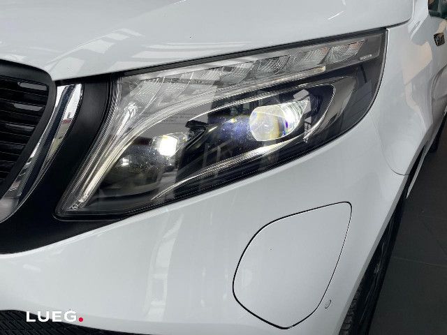 Die beleuchteten „Mercedes-Benz“ Schriftzüge mit Edelstahlblende vermitteln Exklusivität bereits beim Einstieg. Beim Öffnen der Fahrer- und Beifahrertür werden die Schriftzüge vorn beleuchtet, beim Öffnen der vorhandenen Schiebetüren auch hinten.