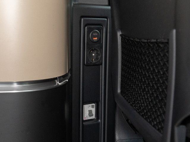 An den 12-V-Steckdosen können elektrische Verbraucher mit einer maximalen Leistungsaufnahme von 180 W geladen werden. Dank der Zusatzbatterie werden die Steckdosen auch mit Strom versorgt, wenn die Zündung nicht eingeschaltet ist. Die Steckdosen sind in der 1. Sitzreihe links in der Seitenverkleidung eingebaut, in der 2. Sitzreihe links und rechts.
