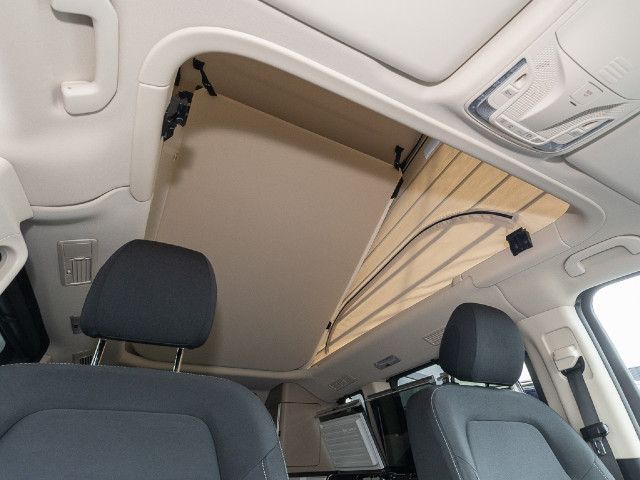 Das mechanische Aufstelldach ermöglicht eine variable Nutzung des Fahrzeugs und lässt sich leicht von Hand auf- und zuklappen. Bei aufgestelltem Dach entsteht ein großzügiger Raumeindruck mit einer Stehhöhe von bis zu 2.350 mm. Durch den Faltenbalg eindringendes Tageslicht verstärkt das angenehme Ambiente.