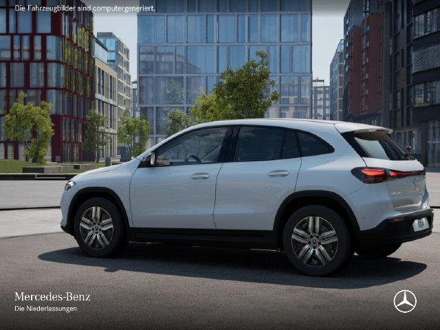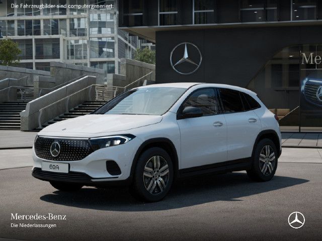 Serienausstattung Unverkennbares Mitglied der vollelektrischen Mercedes-Benz Familie: Außen charakterisieren den EQA die Black-Panel-Kühlerverkleidung, das Leuchtenband an Front und Heck sowie blaue Elemente in den LED-Scheinwerfern. Innen weist das intelligente MBUX Multimediasystem den Weg zur nächsten Ladesäule.