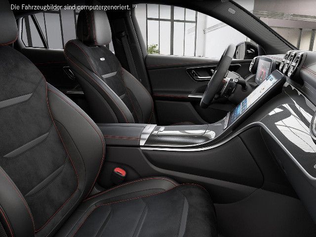Willkommen in der Welt von Mercedes-AMG: Ihr Interieur vereint erstklassigen Komfort mit performantem Design. Schwarze Sportsitze mit roten Kontrastziernähten und das AMG Performance Lenkrad in Leder Nappa prägen das Ambiente. AMG spezifische Anzeigen komplettieren diesen dynamischen Auftritt visuell und funktional.