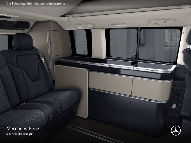 Die beleuchteten „Mercedes-Benz“ Schriftzüge mit Edelstahlblende vermitteln Exklusivität bereits beim Einstieg. Beim Öffnen der Fahrer- und Beifahrertür werden die Schriftzüge vorn beleuchtet, beim Öffnen der vorhandenen Schiebetüren auch hinten.
