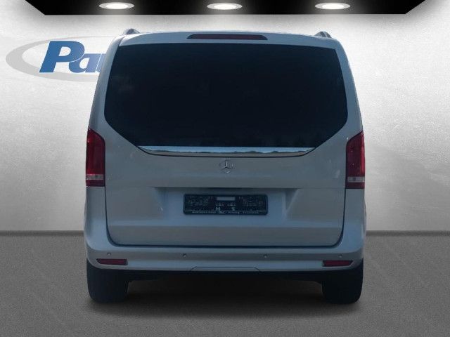 Die beleuchteten „Mercedes-Benz“ Schriftzüge mit Edelstahlblende vermitteln Exklusivität bereits beim Einstieg. Beim Öffnen der Fahrer- und Beifahrertür werden die Schriftzüge vorn beleuchtet, beim Öffnen der vorhandenen Schiebetüren auch hinten.