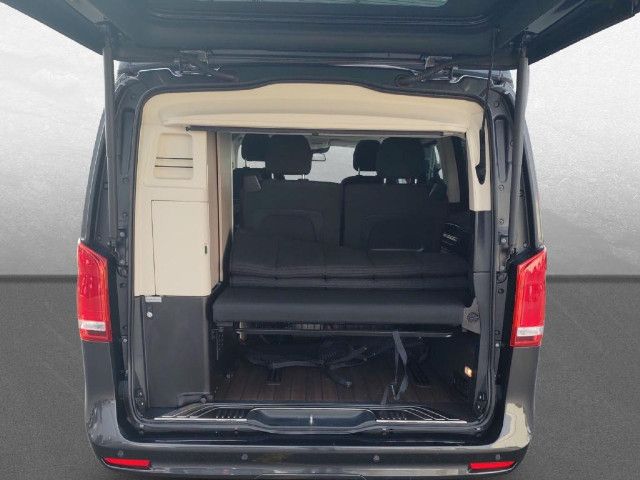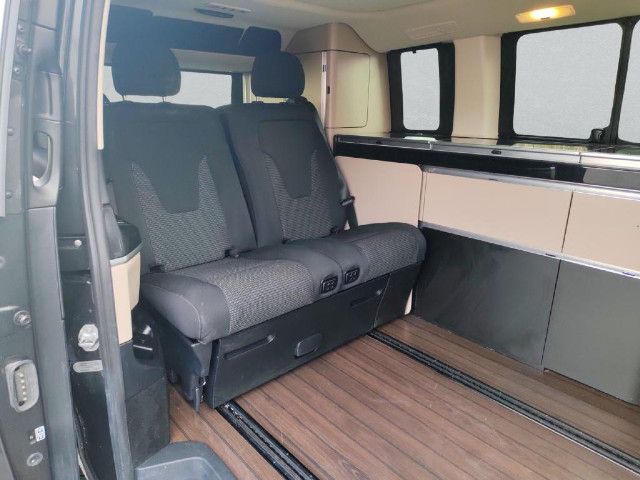 Die beleuchteten „Mercedes-Benz“ Schriftzüge mit Edelstahlblende vermitteln Exklusivität bereits beim Einstieg. Beim Öffnen der Fahrer- und Beifahrertür werden die Schriftzüge vorn beleuchtet, beim Öffnen der vorhandenen Schiebetüren auch hinten.