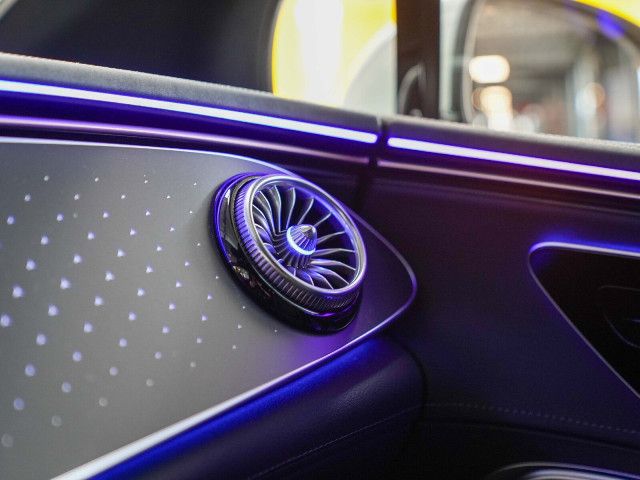 Zierelement hinterleuchtet Ein Kunstwerk aus Licht: Im Zusammenspiel mit der Ambientebeleuchtung erstrahlt das Mercedes-Benz Pattern auf der Instrumententafel in Ihrer Wunschfarbe. Diese faszinierende Inszenierung verleiht dem Innenraum eine futuristische Tiefe und schafft eine Atmosphäre von moderner Eleganz.