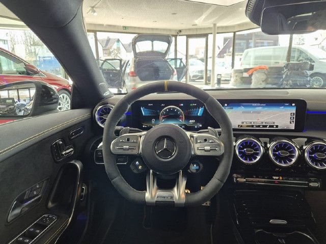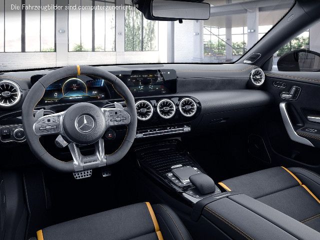 Mercedes-AMG CLA 45 S 4MATIC+: pure Fahrfreude, keine Kompromisse. Mit der Wahl des S-Modells erhalten Sie das Fahrprogramm RACE inklusive Drift-Mode. Die größeren Doppelendrohrblenden verdeutlichen die nochmals gesteigerte Leistung. Gelbe Kontrastziernähte ziehen sich durch das Interieur und tragen schon beim Einsteigen zum Motorsport-Gefühl bei.