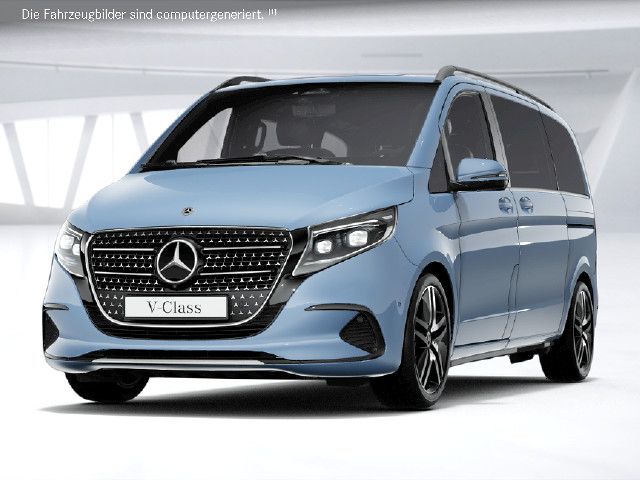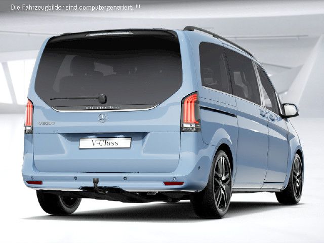Funktional und optisch attraktive Ausstattungen steigern die Exklusivität der V-Klasse. 43,2 cm (17 Zoll) Leichtmetallräder, adaptive MULTIBEAM LED Scheinwerfer sowie abgedunkelte Rückleuchten und die dynamisch geformte Heckscheibe mit Chromzierstab und „Mercedes-Benz“ Schriftzug verfeinern das Exterieur.