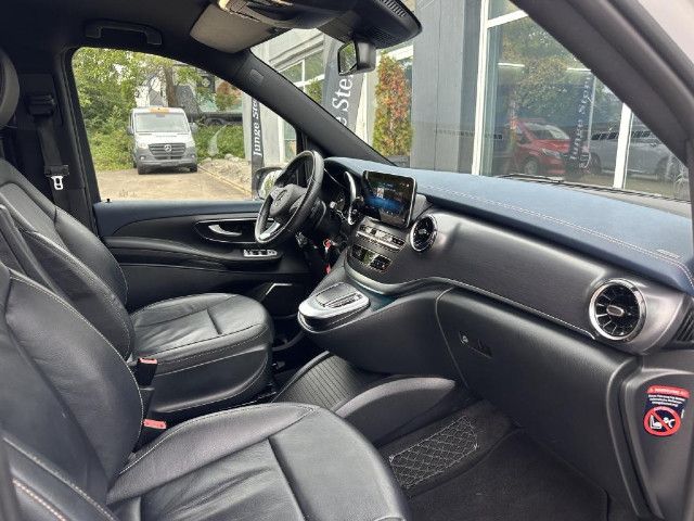 Schriftzug Einstieg Mercedes-Benz beleuchtet Die beleuchteten „Mercedes-Benz“ Schriftzüge mit Edelstahlblende vermitteln Exklusivität bereits beim Einstieg. Beim Öffnen der Fahrer- und Beifahrertür werden die Schriftzüge vorn beleuchtet, beim Öffnen der vorhandenen Schiebetüren auch hinten.