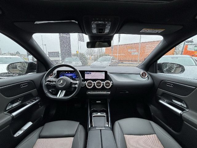 Unverkennbares Mitglied der vollelektrischen Mercedes-Benz Familie: Außen charakterisieren den EQA die Black-Panel-Kühlerverkleidung, das Leuchtenband an Front und Heck sowie blaue Elemente in den LED-Scheinwerfern. Innen weist das intelligente MBUX Multimediasystem den Weg zur nächsten Ladesäule.