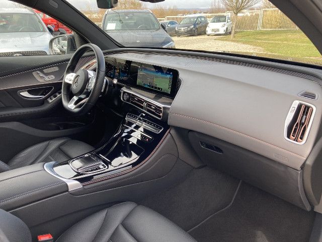 Die AMG Line Interieur verleiht Ihrem Fahrzeug sicht- und fühlbar mehr Sportlichkeit. Zusätzlich zur Elektro-Ästhetik des Innenraums steigert beispielsweise das unten abgeflachte, im Griffbereich perforierte Multifunktions-Sportlenkrad in Leder Nappa den Fahrspaß. Ihren guten Seitenhalt unterstützen die Sportsitze mit AMG spezifischer Sitzgrafik.