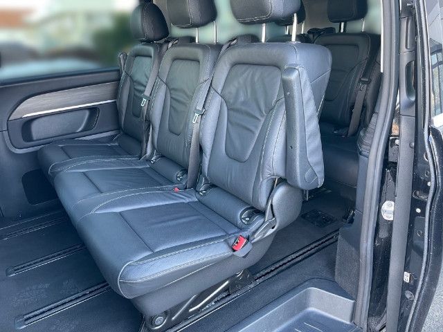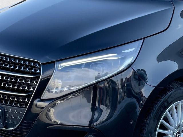 Funktional und optisch attraktive Ausstattungen steigern die Exklusivität der V-Klasse. 43,2 cm (17 Zoll) Leichtmetallräder, adaptive MULTIBEAM LED Scheinwerfer sowie abgedunkelte Rückleuchten und die dynamisch geformte Heckscheibe mit Chromzierstab und „Mercedes-Benz“ Schriftzug verfeinern das Exterieur.