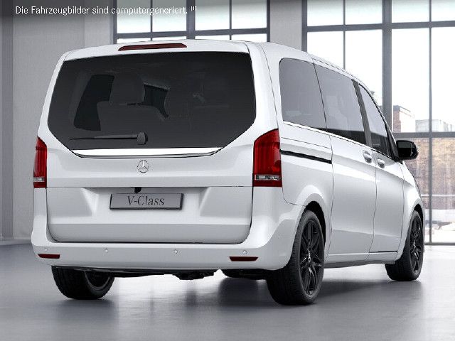 Die beleuchteten „Mercedes-Benz“ Schriftzüge mit Edelstahlblende vermitteln Exklusivität bereits beim Einstieg. Beim Öffnen der Fahrer- und Beifahrertür werden die Schriftzüge vorn beleuchtet, beim Öffnen der vorhandenen Schiebetüren auch hinten.