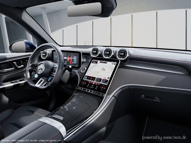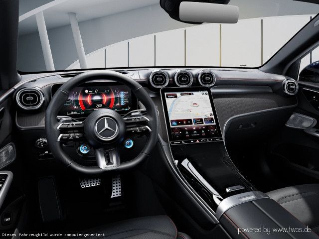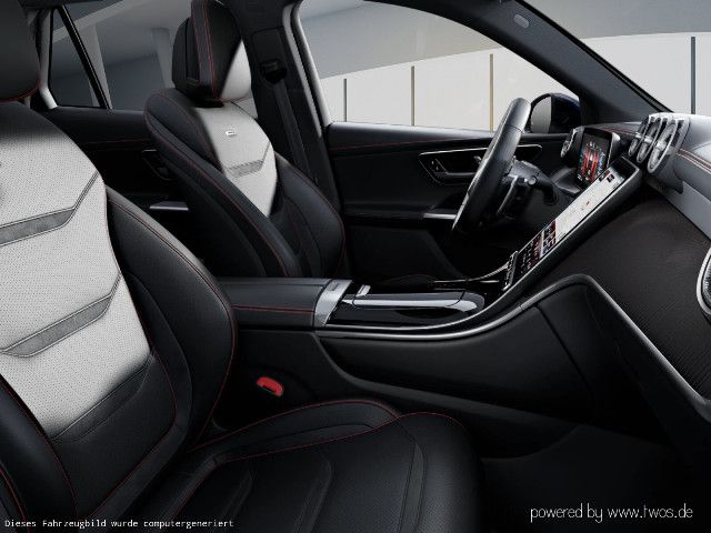 Willkommen in der Welt von Mercedes-AMG: Ihr Interieur vereint erstklassigen Komfort mit performantem Design. Schwarze Sportsitze mit roten Kontrastziernähten und das AMG Performance Lenkrad in Leder Nappa prägen das Ambiente. AMG spezifische Anzeigen komplettieren diesen dynamischen Auftritt visuell und funktional.