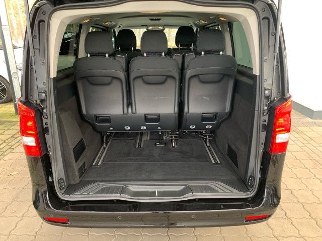 Der Komfort-Sitz in der 1. Reihe im Fond links ermöglicht mit vielen Einstellmöglichkeiten angenehmes Sitzen. Die Sitzlehne und die Armlehnen sind in ihrer Neigung, die Komfort-Kopfstütze in ihrer Höhe und Neigung einstellbar. Der Komfort-Sitz lässt sich um 180° drehen, ist mit 3-Punkt-Sicherheitsgurt und ISOFIX- Kindersitzbefestigung ausgestattet.