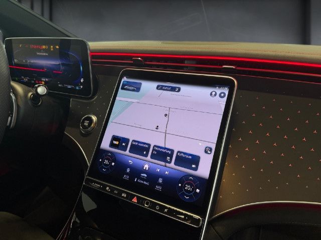 Ein Kunstwerk aus Licht: Im Zusammenspiel mit der Ambientebeleuchtung erstrahlt das Mercedes-Benz Pattern auf der Instrumententafel in Ihrer Wunschfarbe. Diese faszinierende Inszenierung verleiht dem Innenraum eine futuristische Tiefe und schafft eine Atmosphäre von moderner Eleganz.