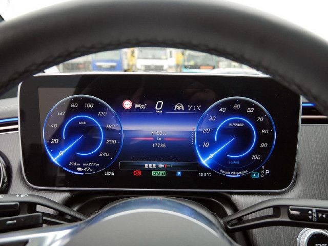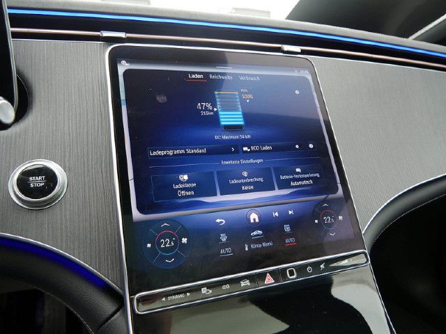 Fahrzeugsteckdosenklappe elektrisch Dirigieren Sie Ihren Ladeprozess mit Eleganz: Über MBUX öffnen Sie die Steckdosenklappe ganz bequem direkt vom Cockpit aus. Nach dem Ladevorgang müssen Sie nur noch den Stecker abziehen – die Klappe schließt automatisch. Durch leichten Druck auf die Klappe lässt sich diese auch manuell öffnen und schließen.