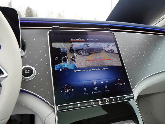 Der Aktive Park-Assistent mit PARKTRONIC und 360°-Kamera erkennt freie Parklücken sowie markierte Parkplätze im Vorüberfahren. Nach der Parkplatzauswahl können Sie dank dynamischer Visualisierung und akustischer Rückmeldung souverän einparken – oder assistiert einparken lassen.