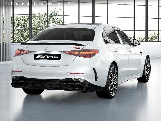 Zum hochemotionalen Design des Topmodells gehören beispielsweise eindrucksvolle Lufteinlässe an der Front. Ausgestellte AMG Kotflügel versprechen bereits im Stand fahrdynamische Dominanz. Die trapezförmigen Doppelendrohrblenden sind ein standesgemäßer Abschluss am Heck.