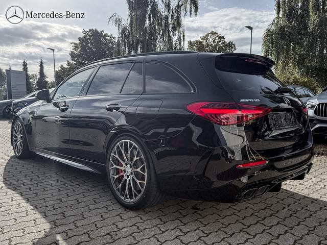 Zum hochemotionalen Design des Topmodells gehören beispielsweise eindrucksvolle Lufteinlässe an der Front. Ausgestellte AMG Kotflügel versprechen bereits im Stand fahrdynamische Dominanz. Die trapezförmigen Doppelendrohrblenden sind ein standesgemäßer Abschluss am Heck.