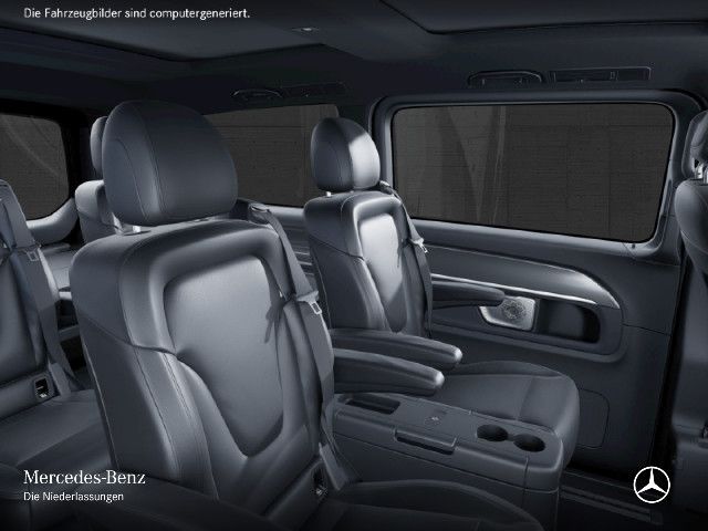 Funktional und optisch attraktive Ausstattungen steigern die Exklusivität der V-Klasse. 43,2 cm (17 Zoll) Leichtmetallräder, adaptive MULTIBEAM LED Scheinwerfer sowie abgedunkelte Rückleuchten und die dynamisch geformte Heckscheibe mit Chromzierstab und „Mercedes-Benz“ Schriftzug verfeinern das Exterieur.